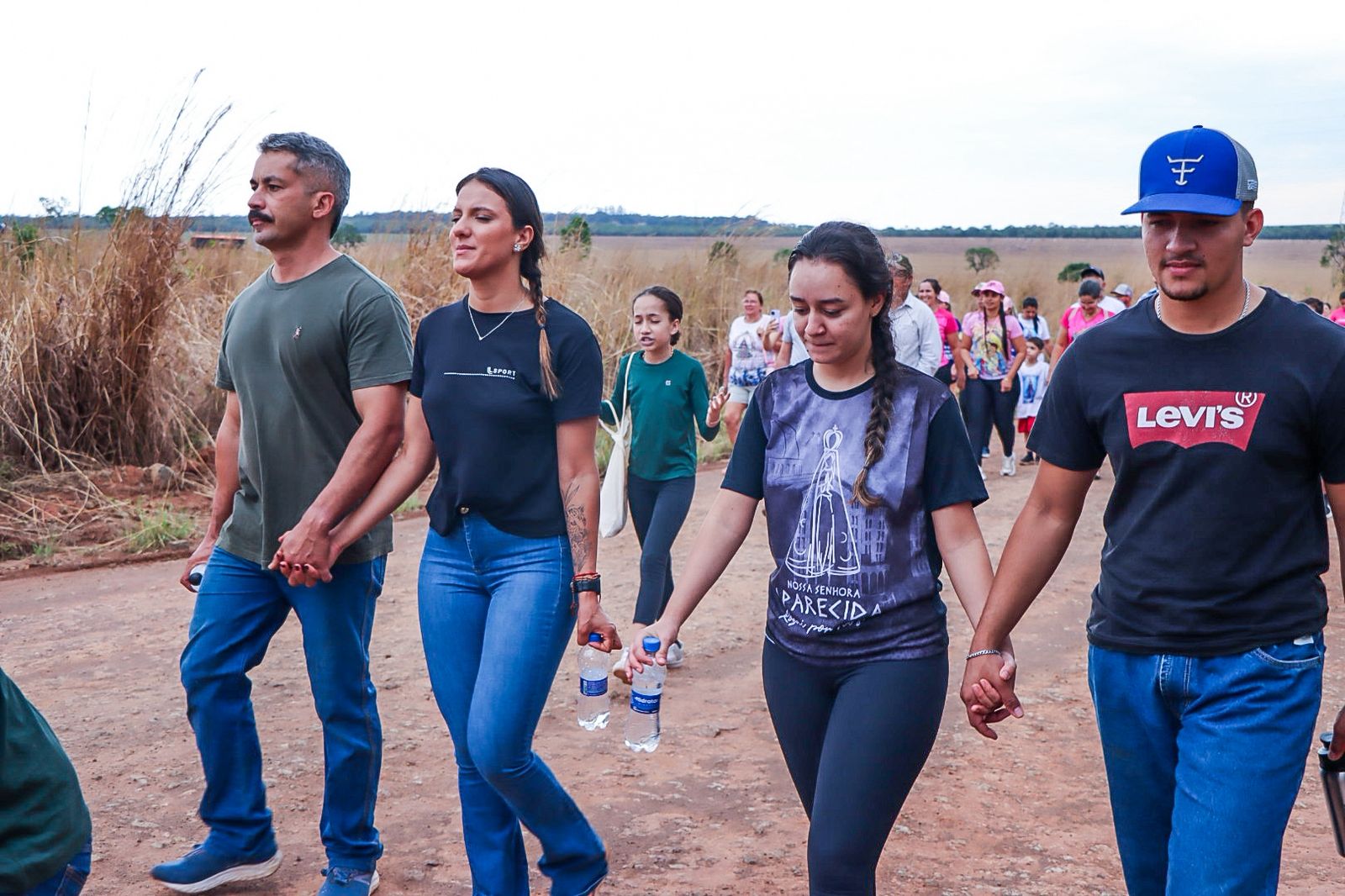 Durante o percurso, os participantes contaram com o apoio da organização, que ofereceu água, cachorro-quente, picolés e refrigerantes, garantindo conforto e acolhimento a todos os peregrinos.